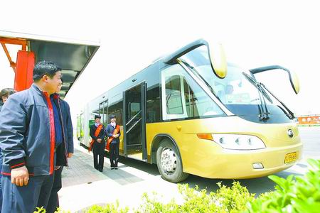 28日,身價(jià)300萬元的超長“子彈頭”公交車和價(jià)值80多萬元的雙層豪華觀光大巴加入鄭開城際公交。
