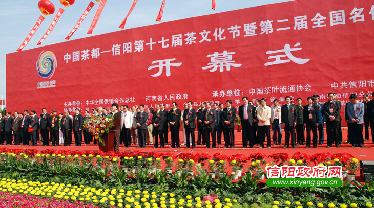 開幕式由中共信陽市委書記王鐵主持,郭瑞民致歡迎辭。他首先代表中共信陽市委、信陽市人民政府和全市800萬人民向蒞臨這次盛會的各級領導、各位朋友表示熱烈的歡迎和衷心的感謝。他說,信陽是一座美麗的城市,素有北國江南、江南北國的美譽,是全國雙擁模范城、中國優(yōu)秀旅游城和國家生態(tài)示范市、中國最具投資潛力的城市20強。近年來,我們圍繞放大茶葉資源優(yōu)勢,大力發(fā)展茶產業(yè),2008年全市茶園面積已達120萬畝,可開采面積75萬畝,茶業(yè)產量達2200萬公斤,所產信陽毛尖是全國十大名茶之一。最近信陽市申報的地理標志產品——信陽毛尖茶國家標準獲國家標準化委員會正式批準,將于今年6月1日起實施,這對進一步提升信陽毛尖品質,打造信陽毛尖品牌,推動信陽毛尖走向全國、走向世界具有十分重大的意義。本屆節(jié)會,我們繼續(xù)秉承以茶為媒、以茶節(jié)友、文化搭臺、經貿唱戲的宗旨,精心籌備了全國優(yōu)名茶博覽交易會、全國名優(yōu)綠茶評比、全國公路自行車環(huán)浉河大奬賽和大型文藝晚會等豐富多彩的活動,同時篩選發(fā)布了一批高質量的經濟技術合作項目,愿各位有識之士與我們攜手合作,共謀發(fā)展。