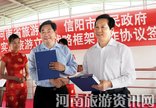 信陽市委書記王鐵在簽字儀式上說,信陽旅游立市要“實(shí)”。“旅游立省”對(duì)信陽是重大發(fā)展機(jī)遇,“旅游立市”也實(shí)實(shí)在在,“游、行、吃、住、娛、購”一點(diǎn)一點(diǎn)要做實(shí),要打造南灣湖自行車賽道、雞公山賓館升級(jí)改造、震雷山紅色迪尼斯。他強(qiáng)調(diào),要畫龍點(diǎn)“睛”,這個(gè)簽字儀式,就是畫龍點(diǎn)睛,畫出了一條巨龍,還缺乏點(diǎn)眼之筆。要把“睛”點(diǎn)好,精刻細(xì)雕,把旅游做強(qiáng)做精,打造一流精品,交一個(gè)圓滿的答案。