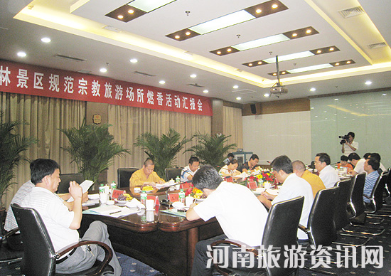 8月25日上午,規(guī)范全國(guó)宗教旅游場(chǎng)所燃香活動(dòng)專(zhuān)項(xiàng)檢查組一行四人來(lái)到登封,參加了“少林景區(qū)規(guī)范宗教旅游場(chǎng)所燃香活動(dòng)匯報(bào)會(huì)”。省市縣三級(jí)旅游部門(mén)、宗教部門(mén)和少林寺景區(qū)負(fù)責(zé)人出席匯報(bào)會(huì)。省旅游局副局長(zhǎng)李亞白出席匯報(bào)會(huì)并就省旅游局進(jìn)一步規(guī)范宗教旅游場(chǎng)所燃香活動(dòng)工作的情況作向檢查組了匯報(bào)。