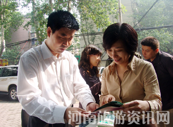 河南省旅游局副局長宋爭輝(左一)解答群眾提出的問題