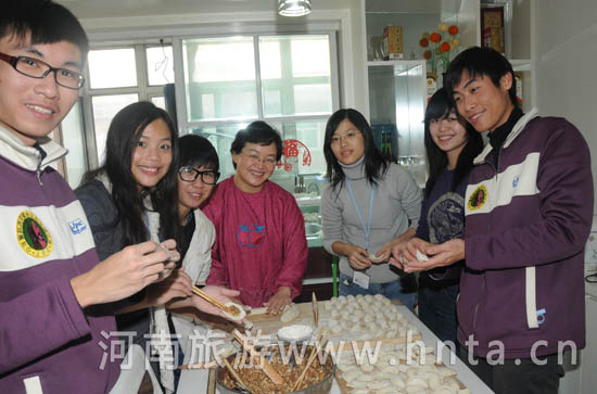 12月29日上午,來自香港的115名團員分為20個小組分別與鄭州的20個家庭進行交流活動。上午9點,記者跟隨其中的一組團員前往市民宋先生家進行訪問交流活動。宋先生告訴記者,為了迎接這些香港小客人的到來,全家人提前兩、三天就開始準(zhǔn)備了。在宋先生家,香港的小團員陳顯麟、王家欣、陳靜芙、袁穎寶、陳世晉和宋先生一家人拉家常,彈鋼琴,看照片,包餃子。頭一次吃到自己動手包的水餃,同學(xué)們一個個高舉大拇指,向宋先生一家人不停地用剛學(xué)的河南話表示自己的謝意:“中,中,得勁兒,可中……”。臨別時同學(xué)們還同宋先生一家互贈禮物,合影留念。小團員們紛紛表示,河南人真的是很熱情好客,在接下來看幾天的活動中一定要好好的了解源遠流長的中原文化。