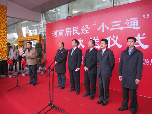 河南省旅游局副局長倪豫州表示,該儀式的舉行,標志著河南人經(jīng)“小三通”赴臺游活動的序幕正式拉開。“小三通”赴臺旅游產(chǎn)品不僅讓游客體驗了海、陸、空“三位一體”的旅游方式,而且在臺灣環(huán)島游的同時,領略了金門旅游的魅力,滿足了不同層次的游客需求,已經(jīng)成為河南旅游的熱點。福建省旅游局副局長陳揚標表示,此次活動是貫徹胡錦濤總書記“用好福建獨特的旅游資源和對臺旅游區(qū)們優(yōu)勢,打造好海峽旅游品牌,努力建設‘國際知名的旅游目的地’”重要指示的具體行動,是全面構建“小三通”黃金通道的有力舉措,也是組織“百萬游客海峽行”的重要內容,開啟了閩豫兩省旅游交流合作的新序幕。此次河南居民經(jīng)“小三通”赴臺旅游團為首發(fā)團,未來閩豫兩省還將進一步加強旅游協(xié)作,包裝設計更多適合福建、河南、臺灣三地經(jīng)“小三通”往來兩岸一程多站式的產(chǎn)品線路,共同開發(fā)聯(lián)線旅游,拓展兩岸客源市場。