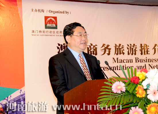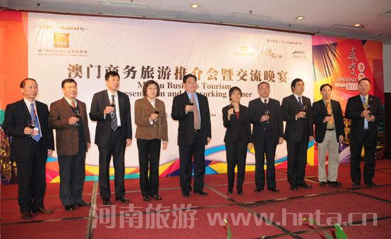 4月16日,“澳門商務(wù)旅游推介會(huì)暨交流晚宴”在鄭州舉行。河南省旅游局局長蘇福功,副局長何琳,澳門特別行政區(qū)旅游局副局長文綺華等出席了推介會(huì)。豫澳兩地旅游業(yè)、商業(yè)等各界代表及新聞媒體參加了會(huì)議。