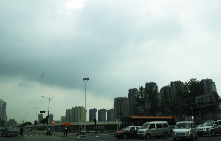 昨天的鄭州,雨水走走停停,下午5時(shí)左右,天空陰云密布 田仲煜/攝
