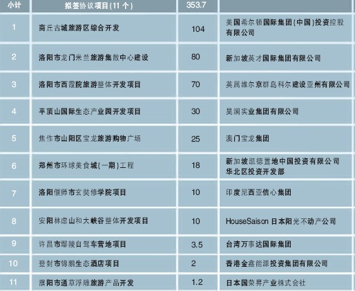 2010世界旅游城市市長論壇擬簽約項目一覽