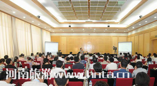 7月19日下午,河南省旅游局邀請著名旅游策劃專家賈云峰來到鄭州,做了題為《旅游創(chuàng)新傳播一體化解決方案》的精彩講座。省旅游局副局長何琳、倪豫州出席,并與局全體干部職工、各省轄市市旅游局局長、主管市場宣傳的科長等一起聆聽了講座。倪豫州副局長主持了講座。