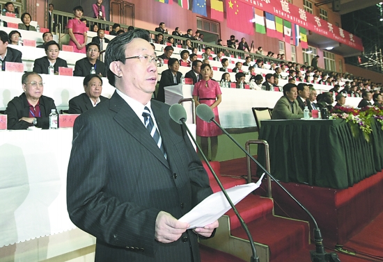 | 省委副書記、省長郭庚茂在2010中國云臺山國際旅游節(jié)開幕式上講話。 趙耀東 攝 |
