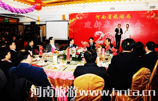 1月27日下午,河南省旅游局舉行迎新春聯(lián)歡會,局領(lǐng)導(dǎo)班子成員、離退休老干部、機關(guān)和直屬單位全體干部職工,在鄭的五星級酒店、20家出境游旅游社負責人大家歡聚一堂,喜迎新春佳節(jié)。