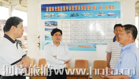 范修芳局長(zhǎng)在小浪底游客服務(wù)中心和黃河小浪底水庫(kù)張嶺碼頭調(diào)研中指出,小浪底游客中心是小浪底景區(qū)的一個(gè)服務(wù)窗口,要在確保質(zhì)量的前提下加快建設(shè)進(jìn)度,力爭(zhēng)早日建成投入使用。工程建設(shè),特別是水上旅游安全工作至關(guān)重要,一定要放在首位,高度重視、常抓不懈,認(rèn)真落實(shí)各項(xiàng)安全制度。一是突出抓好安全生產(chǎn)。游船、游艇等水上旅游項(xiàng)目及碼頭要制定完善相應(yīng)安全防范措施,建立安全管理機(jī)制,全方位落實(shí)好安全生產(chǎn)責(zé)任。二是建立安全管理長(zhǎng)效機(jī)制。旅游交通安全、旅游團(tuán)隊(duì)食品衛(wèi)生安全等是旅游安全工作重點(diǎn),也是事故隱患排查整改的重點(diǎn)。要加強(qiáng)與交通、交警、衛(wèi)生、安監(jiān)等部門(mén)配合,建立旅游交通、食品衛(wèi)生等安全生產(chǎn)管理長(zhǎng)效機(jī)制。三是提高應(yīng)急處置能力。游船、快艇等水上項(xiàng)目的開(kāi)通,要制定和組織開(kāi)展旅游安全應(yīng)急演練,修訂完善好旅游突發(fā)事件的應(yīng)急預(yù)案。四是加強(qiáng)旅游安全培訓(xùn)。開(kāi)展“安全生產(chǎn)月”活動(dòng),制訂安全培訓(xùn)計(jì)劃,加強(qiáng)對(duì)旅游從業(yè)人員和游客的旅游安全意識(shí)教育和安全工作技能培訓(xùn),提高預(yù)防和處置安全事故的能力,及時(shí)為游客提供救助,有效控制各種安全事件的發(fā)生。