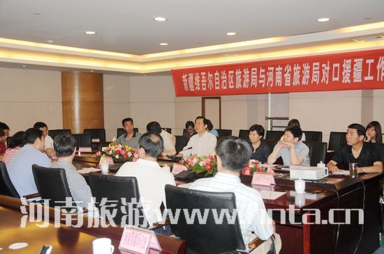 為了進(jìn)一步增進(jìn)兩省交流,拓寬合作領(lǐng)域。6月7日上午,河南旅游局與新疆維吾爾自治區(qū)旅游局對口援疆工作會議在鄭州召開。河南省旅游局副局長王玉寶,新疆維吾爾自治區(qū)旅游局副巡視員葛家瑄等相關(guān)負(fù)責(zé)人出席了會議,河南與新疆?dāng)?shù)家旅行社及媒體參加了會議。