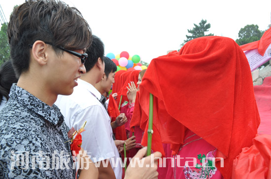 活動由廣場開幕式及文藝演出、鵲橋相會、情人柏處掛同心鎖和互動游戲、大佛面前許心愿、摩崖路單身交友互動、登高望遠、放飛夢想、單身交友者自由結(jié)合游覽大伾山等環(huán)節(jié)組成。當天,天公作美、溫度適宜,不時淅瀝的毛毛細雨更將這個“七夕”節(jié)變得更加浪漫舒懷。