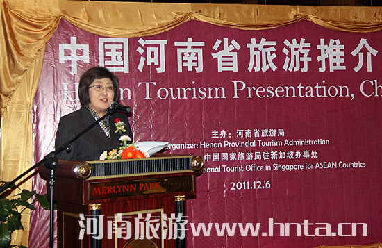 在新加坡期間,推介團于12月8日至10日分別在新加坡富麗華酒店和國際會展中心舉辦了河南旅游推介會和河南旅游宣傳周活動,拜會了新加坡國家旅游局,考察了當?shù)芈糜卧O(shè)施建設(shè)和旅游業(yè)發(fā)展情況,新加坡旅游局高級署長梁覺、中國駐新加坡大使館文化參贊陳疆、國家旅游局駐新加坡辦事處主任田欣等參加了活動。省旅游局與廈門航空公司以及新加坡四家旅行社簽訂了合作協(xié)議,我省部分國際旅行社與新加坡當?shù)芈眯泻炗喠寺糜魏献鲄f(xié)議。河南旅游宣傳周活動期間,我省少林武術(shù)和開封宋朝樂舞表演吸引了幾萬新加坡民眾前來觀看,新加坡多個旅行社推出了“河南之旅”線路,中央電視臺駐新加坡記者現(xiàn)場采訪了范修芳局長和開封市副市長郭軻。范修芳局長在活動中分別介紹了河南省旅游業(yè)發(fā)展情況和旅游特色產(chǎn)品,與新加坡國家旅游局、中國國家旅游局駐新加坡辦事處就加強旅游合作、開展雙方游客互動和推動航空旅游市場發(fā)展等方面進行了深入交流。