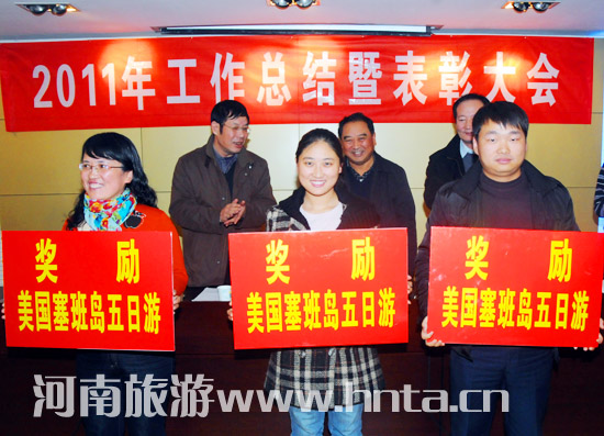 河南省旅游協(xié)會副會長、資訊有限公司董事長趙振祥鼓勵大家繼續(xù)保持團結(jié)、敬業(yè)、奮斗、堅持的精神,在2012年實現(xiàn)新的騰飛和邁進。信息中心主任李文彬,資訊公司副董事長、總經(jīng)理李全民分別對中心和工作做了總結(jié),對2012年工作進行了安排部署。