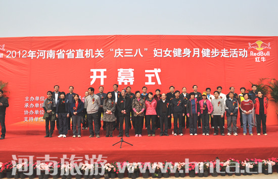 為進(jìn)一步活躍我省省直機(jī)關(guān)女職工的文化生活,提高廣大女職工的身體素質(zhì),3月28日,由省體育局、省直機(jī)關(guān)工委、省文明辦、省總工會(huì)和省婦聯(lián)五部門(mén)聯(lián)合舉辦了2012省直機(jī)關(guān)“慶三八”婦女健身月健步走活動(dòng)。河南省旅游局局直黨委組織機(jī)關(guān)及直屬單位干部職工參加了活動(dòng)。