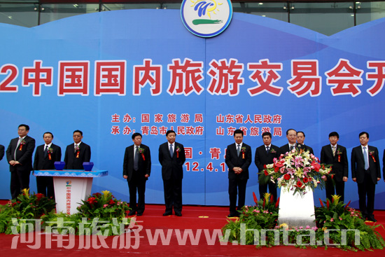 4月13日至15日,由國家旅游局、山東省人民政府共同主辦的2012中國國內(nèi)旅游交易會在山東青島舉辦。國家旅游局局長邵琪偉、副局長祝善忠,山東省委副書記、省長姜大明等領(lǐng)導(dǎo)出席開幕式并致辭,全國31個省、市、自治區(qū)及港澳臺地區(qū)的2000多家企業(yè)和機(jī)構(gòu)參展。河南省旅游局黨組書記、局長范修芳率18個省轄市旅游局、主要景區(qū)、旅行社、星級飯店、旅游商品經(jīng)營企業(yè)等組成的河南代表團(tuán)參展。