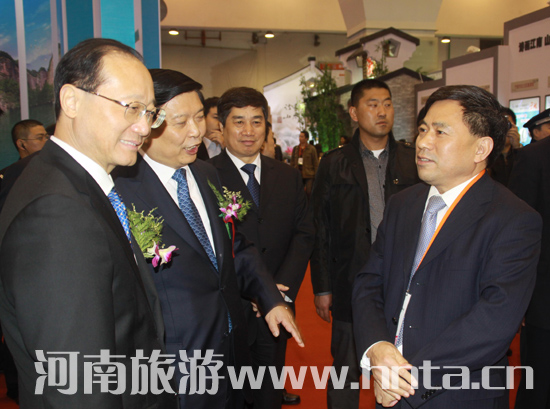 范修芳局長向國家旅游局邵琪偉局長、山東省省長姜大明、國家旅游局副局長祝善忠介紹河南展區(qū)情況