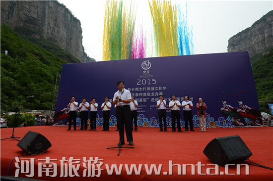 河南省副省長張廣智,河南省旅游局副局長倪豫州,新鄉(xiāng)市委書記舒慶、市長王小平,新鄉(xiāng)市旅游局局長劉英,輝縣市委書記王天興、市長張星吉等出席開幕式。央視著名主持人海霞主持開幕式。