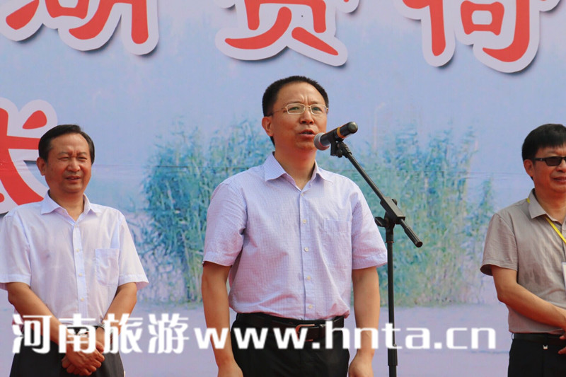 淮陽(yáng)縣委書(shū)記、縣長(zhǎng)馬明超致歡迎詞,他說(shuō),近年來(lái),淮陽(yáng)依托國(guó)家濕地公園--萬(wàn)畝龍湖的品牌優(yōu)勢(shì),以湖為媒,以荷會(huì)友,充分展示了古城淮陽(yáng)的厚重文化與秀美風(fēng)光,強(qiáng)力推介了“萬(wàn)畝龍湖生態(tài)游”、“羲皇故都尋根游”等旅游產(chǎn)品,叫響了中華朝祖圣地、中國(guó)休閑福地、國(guó)學(xué)文化源地三個(gè)文化旅游品牌,進(jìn)一步提升了淮陽(yáng)文化旅游的知名度、美譽(yù)度和影響力。自2007年已成功舉辦八屆的淮陽(yáng)荷花節(jié),成為繼洛陽(yáng)牡丹、開(kāi)封菊展之后第三大花卉旅游節(jié)會(huì)品牌,有力促進(jìn)了淮陽(yáng)經(jīng)濟(jì)社會(huì)健康發(fā)展。今年上半年,全縣共接待游客716.6萬(wàn)人次,實(shí)現(xiàn)門(mén)票收入7136.2萬(wàn)元,實(shí)現(xiàn)文化旅游綜合收入21.5億元。