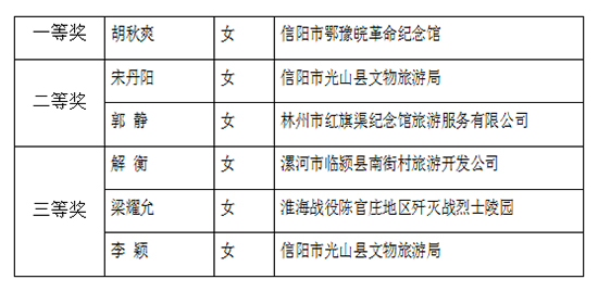 經(jīng)過各地紅色旅游景區(qū)的高度重視、積極參與、選拔推薦優(yōu)秀選手、編寫紅色故事、拍攝制作多媒體VCR,最后共有14名紅色旅游景區(qū)工作人員進入大賽。專家評委會通過演講內(nèi)容、演講技巧、儀表形象和會場效果等四方面的內(nèi)容對選手進行評審,經(jīng)過激烈比拼,評出一等獎1人、二等獎2人、三等獎3人。