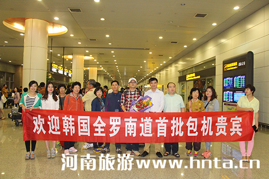 9月26日剛過零點,河南鄭州新鄭國際機場迎來了一批來自韓國全羅南道的游客,他們乘坐“海途號”旅游包機抵達鄭州開始河南之旅。這是河南首例來自全羅南道的游客包機,開辟了河南和韓國之間統(tǒng)一包機、雙向互通的旅游互動新模式。受河南省旅游局領(lǐng)導委托,河南省旅游協(xié)會負責人周學海到機場迎接。