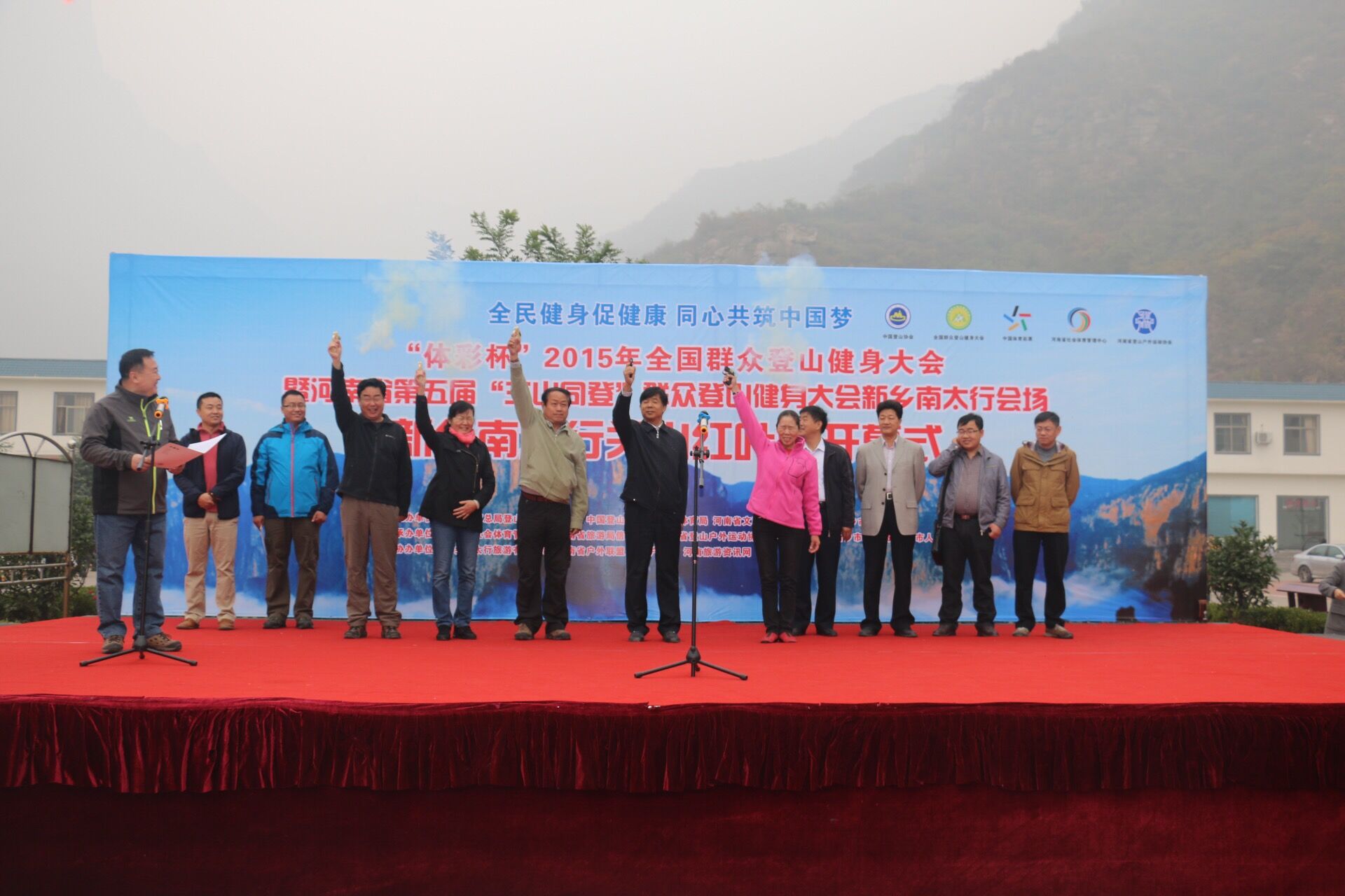 10月24日上午9時(shí),在熱鬧非凡的太行盤鼓聲中,由國家體育總局登山運(yùn)動(dòng)管理中心、中國登山協(xié)會、河南省體育局、河南省文明辦、河南省旅游局主辦,河南省社會體育管理中心、河南省旅游局信息中心、河南省登山戶外運(yùn)動(dòng)協(xié)會、新鄉(xiāng)市體育局、新鄉(xiāng)市旅游局、輝縣市人民政府承辦,新鄉(xiāng)南太行旅游有限公司、河南戶外聯(lián)盟、河南旅游資訊網(wǎng)、河南戶外網(wǎng)協(xié)辦的2015全國群眾登山健身大會暨河南省第五屆“三山同登”群眾登山健身大會南太行會場·關(guān)山紅葉節(jié)在新鄉(xiāng)南太行關(guān)山景區(qū)隆重舉行。