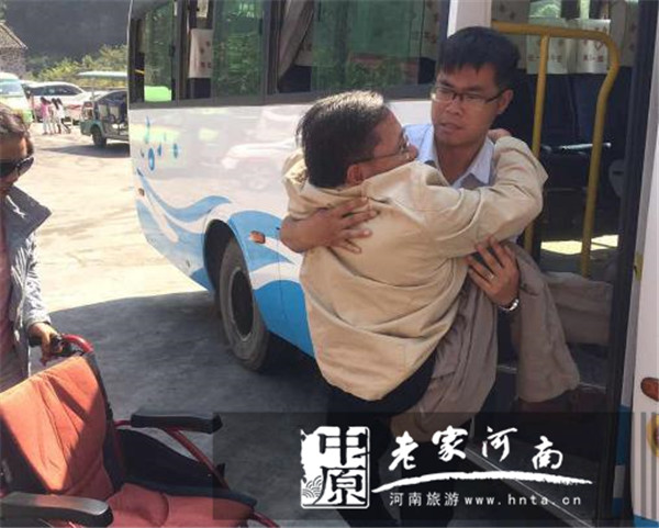 10月3日上午10時10分,在新鄉(xiāng)南太行萬仙山景區(qū)出現(xiàn)了一幕幕令人敬佩的愛心接力幫助殘疾人轉乘景交車的動人場景。第一接力棒發(fā)生在游客進入景區(qū)候車區(qū)出口,萬仙山景區(qū)員工許麗江、裴曉磊主動上前,用雙手將老人從輪椅上抱起,登上了景交車。第二接力棒發(fā)生出景區(qū)大門口,檢票員張崢將老人抱下車放到了輪椅上。第三接力棒發(fā)生在主題碑廣場旅游車站點,轉乘前往南寨停車場,沙窯派出所民警路洋、景區(qū)員工趙星、孫國江、張崢等共同協(xié)力,將老人又再次抬上了出景區(qū)的擺渡車。受助老人非常激動地說:“你們太好了!我一輩子也忘不了!”