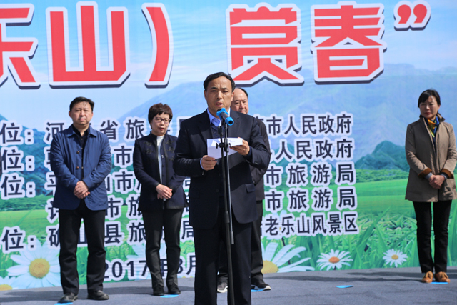 3月27日,“老家河南·生態(tài)豫南”旅游推廣聯(lián)盟成立暨“2017河南(老樂(lè)山)賞春”活動(dòng)啟動(dòng)儀式在駐馬店老樂(lè)山景區(qū)成功舉辦。河南省旅游局副局長(zhǎng)周耀霞、駐馬店市副市長(zhǎng)杜中強(qiáng)、駐馬店市旅游局局長(zhǎng)何新閣、確山縣縣委書(shū)記路耕、確山縣縣長(zhǎng)彭廣峰等相關(guān)領(lǐng)導(dǎo)出席了此次活動(dòng)。平頂山市旅游局副局長(zhǎng)謝煒、安陽(yáng)市旅游局副局長(zhǎng)路暢文、鶴壁市旅游局副局長(zhǎng)鞏為民、新鄉(xiāng)外事僑務(wù)旅游局調(diào)研員馬永軍、焦作市旅游局副局長(zhǎng)楊天軍、許昌市旅游局副局長(zhǎng)吳驗(yàn)兵、漯河市旅游局副局長(zhǎng)李慶瑜、信陽(yáng)市旅游局副調(diào)研員晉振方、濟(jì)源市旅發(fā)委副主任趙昆和來(lái)自全省旅游企業(yè)代表以及來(lái)自河南、湖北、河北、陜西、安徽、福建、四川、湖南、山東、山西、浙江等地60多家新聞媒體記者參加了活動(dòng);顒(dòng)由河南省旅游局旅游促進(jìn)處處長(zhǎng)湯雁主持。