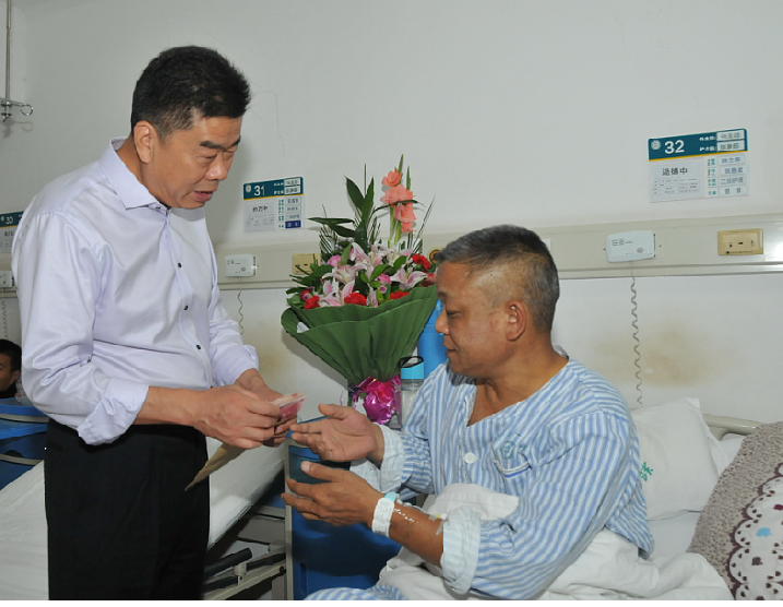 9月19日,張鳳有巡視員代表全局干部職工赴鄭州大學(xué)第一附屬醫(yī)院逯德中病房,將局直工會的慰問金和機關(guān)服務(wù)中心干部職工的捐款共8420元送到他手中,并帶去了牛奶、雞蛋、鮮花等慰問品。張鳳有巡視員對逯德中不幸患病深表同情,在詳細詢問其病情及治療情況后,鼓勵逯德中和家人放下心里負擔、積極配合治療,祝愿他早日康復(fù)并重返工作崗位。逯德中十分感謝組織的關(guān)懷和大家的幫助,這讓他又樹立起了戰(zhàn)勝困難的信心和勇氣,他表示一定會積極配合治療,爭取早日康復(fù)出院并回到工作中去。
