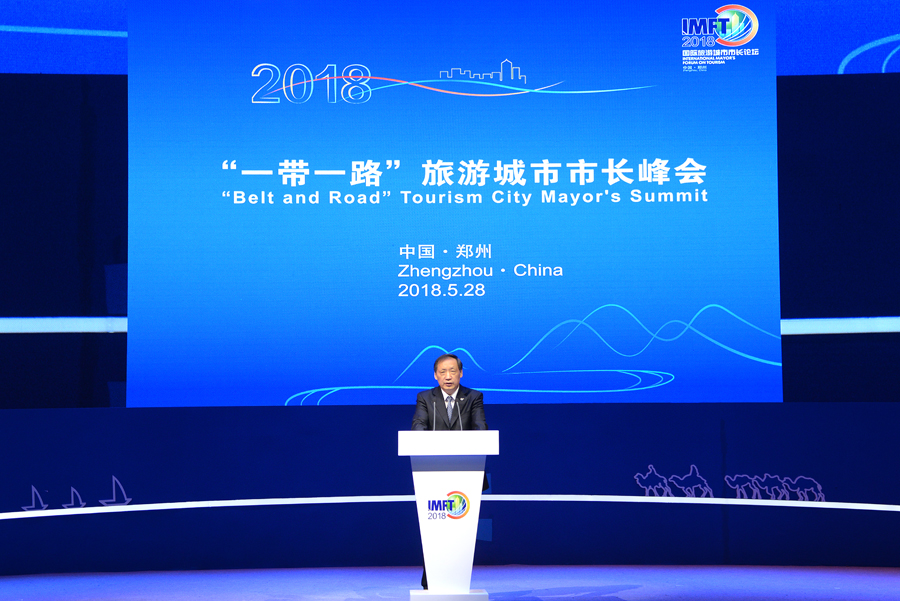 2018年5月28日,2018中國(鄭州)國際旅游城市市長論壇——“一帶一路”旅游城市市長峰會(huì)在鄭州國際會(huì)展中心召開。來自中國文化和旅游部 、河南省政府、聯(lián)合國世界旅游組織、世界旅游聯(lián)盟、亞太旅游協(xié)會(huì),近30個(gè)國家、國內(nèi)外100多個(gè)旅游城市的市長或代表約500人薈萃一堂,交流城市旅游發(fā)展先進(jìn)理念,促進(jìn)世界城市旅游的不斷進(jìn)步。