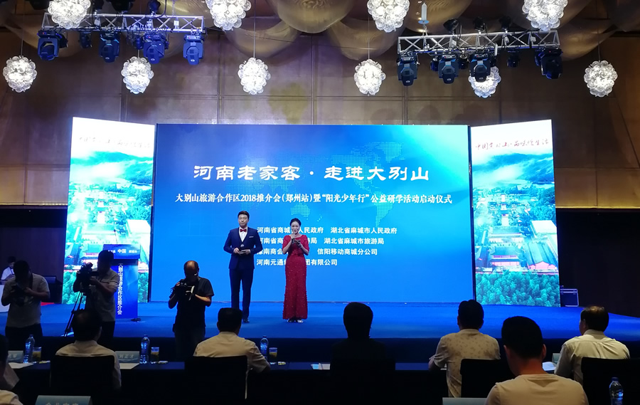 為探索旅游業(yè)跨區(qū)域合作新模式,聯(lián)手開發(fā)大別山旅游資源,打造大別山旅游品牌,大力發(fā)展旅游業(yè)造福兩地人民,7月14日,大別山區(qū)域緊鄰的兩個縣(市)河南商城縣、湖北麻城市在鄭州隆重舉辦大別山旅游合作區(qū)推介會(鄭州站)暨陽光少年行公益研學(xué)活動啟動儀式。河南省旅游局副局長周耀霞、信陽市副市長邵春杰、信陽市旅游局局長童光亮,商城縣委書記李高嶺、湖北省麻城市市委書記楊遙等領(lǐng)導(dǎo)和嘉賓出席了活動。