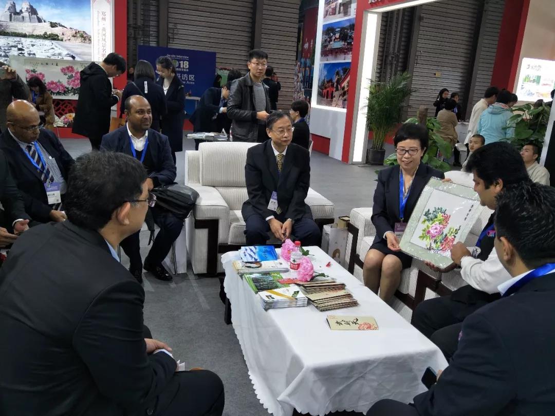 外國(guó)展商到河南展臺(tái)咨詢了解,洽談旅游合作