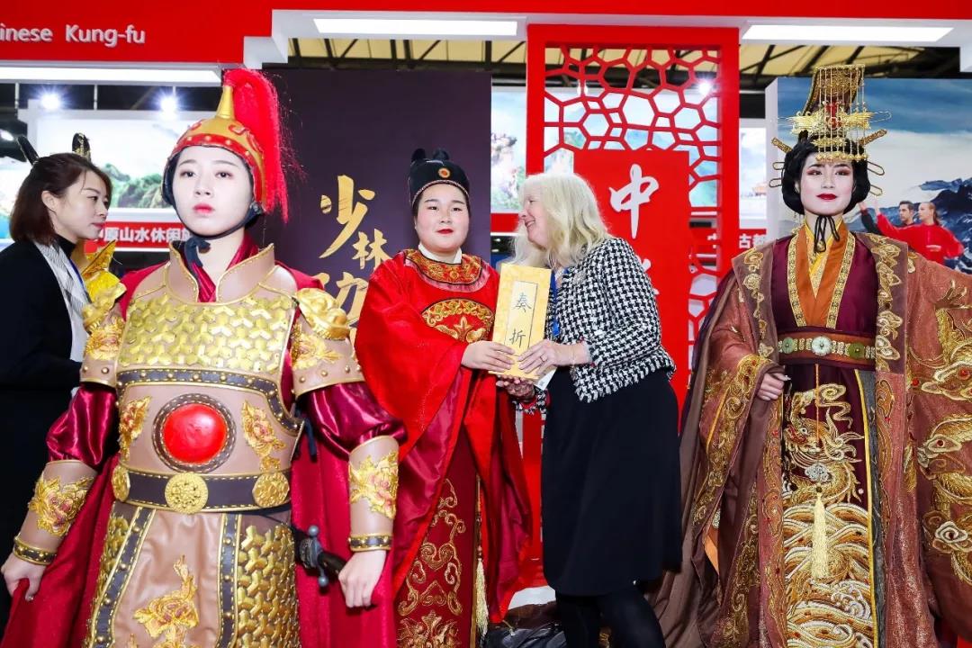此外,還有技藝精湛造型別致的鈞瓷、產(chǎn)地直運(yùn)的牡丹鮮花,少林武僧和太極武者精彩絕倫的功夫秀、專業(yè)有范兒的“包大人”、“武則天”等一眾舞臺(tái)演員互動(dòng)......300平米的河南展位上,全省的代表性旅游元素和文化符號(hào)悉數(shù)展示,成為會(huì)場(chǎng)的亮點(diǎn),尤其是少林和太極功夫表演,吸引大量中外展商游客觀賞,現(xiàn)場(chǎng)反應(yīng)熱烈,歡呼叫好聲不斷,引爆數(shù)次圍觀熱潮。