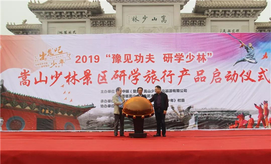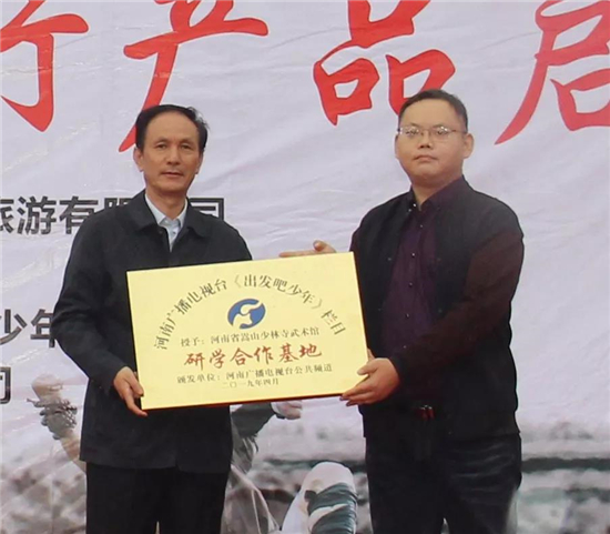 為全面發(fā)展素質(zhì)教育,傳承中國傳統(tǒng)文化,提高中小學生創(chuàng)新精神和實踐能力,大力開展研學旅行。2019年4月21日上午,由河南省嵩山少林寺武術館和嵩山景區(qū)主辦,河南電視臺公共頻道《出發(fā)吧,少年》欄目承辦的嵩山少林景區(qū)研學旅行產(chǎn)品啟動儀式在河南登封市嵩山少林景區(qū)中心廣場成功舉辦。河南廣播電視臺公共頻道《出發(fā)吧,少年》欄目主任楊鑫巍分別向河南省嵩山少林寺武術館和嵩山少林景區(qū)頒發(fā)了“研學合作基地”榮譽獎牌。河南省嵩山少林寺武術館館長焦紅波、港中旅(登封)嵩山少林文化旅游有限公司黨委書記、常務副總經(jīng)理郭朝宏、河南廣播電視臺公共頻道《出發(fā)吧,少年》欄目主任楊鑫巍以及各研學機構(gòu)、旅行社、新聞媒體、師生代表等近600余人參加。
