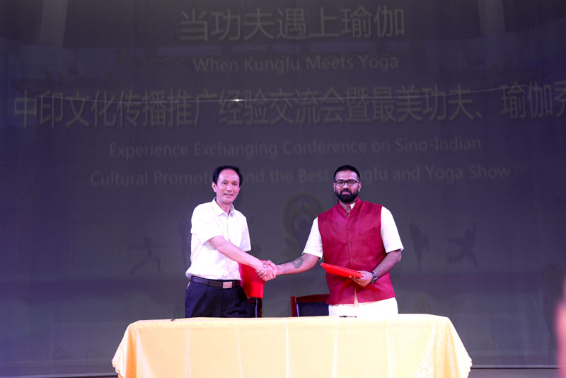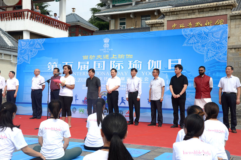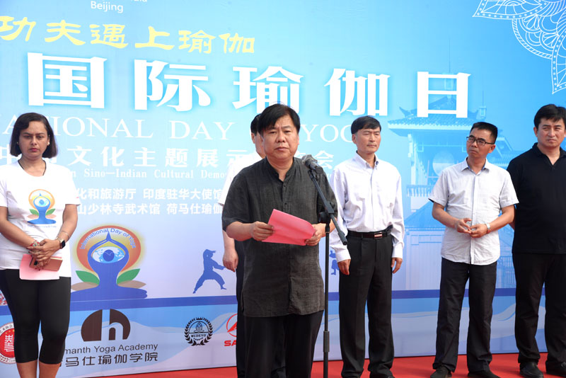 河南省委外辦副巡視員章光敏致辭表示,中印兩國領(lǐng)導(dǎo)人剛剛會(huì)見不久,在第五屆國際瑜伽日之際,舉辦“當(dāng)功夫遇上瑜伽”中印文化主題交流展示活動(dòng)意義非凡,作為中國和印度兩國最具影響的文化品牌在這里相遇、交流,必將碰撞出絢麗的火花,迎來更深層次的文化交流。