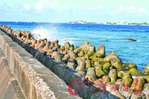 大浪拍打著馬爾代夫首都馬累的“海墻”。
