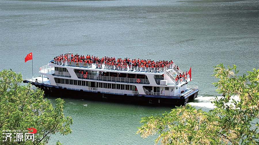 滿載300人的游船不間斷出港,穿梭在黃河三峽景區(qū)