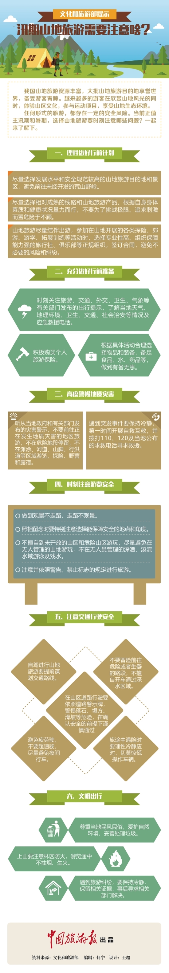 當前正值主汛期和暑期,文化和旅游部提醒廣大游客選擇山地旅游要時刻繃緊安全之弦,平安出游。