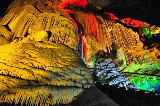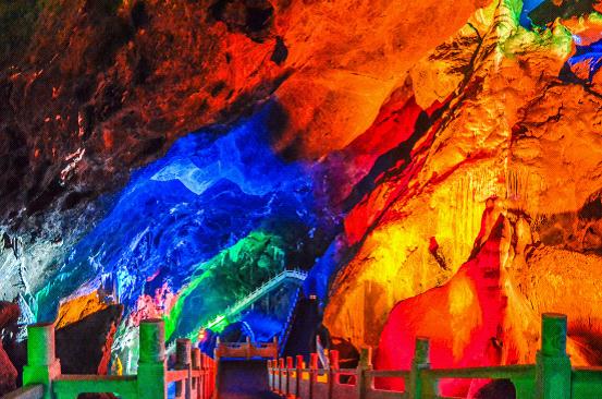 停好車,坐景區(qū)門口的游覽車很方便就到達景區(qū)大門。大門口有長長的臺階,上去臺階就到了洞口。由于是旅游的旺季,在洞口需要排隊等候了一段時間。進入洞里,真的是超級涼爽,溫度大約只有18度左右。要提醒大家的是,如果有老人和小孩,還是應(yīng)該做好準備,提前帶好衣服的,以防溫差過大,容易感冒。洞內(nèi)的景觀還是很不錯的,對于沒有去過溶洞的我來說,全程保持驚訝狀態(tài),伴隨著五光十色的燈光,各種造型的石筍、鐘乳石,宛如仙境一般。