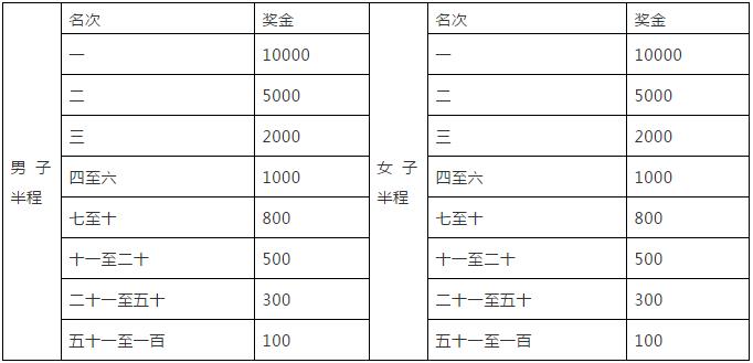3、半程馬拉松團(tuán)體賽:(獎(jiǎng)金為人民幣)