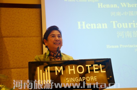 會(huì)上,河南旅游企業(yè)和南方航空公司代表分別進(jìn)行了產(chǎn)品推介,新加坡旅行社紛紛加大力度組團(tuán)到河南。新加坡金航旅游公司CEO林璒利女士代表新加坡旅游界進(jìn)行發(fā)言。她表示,河南就是海外華人的根,是東南亞華人最為向往的旅游目的地,金航旅游將聯(lián)合新加業(yè)界同行,多多組團(tuán)赴河南旅游。