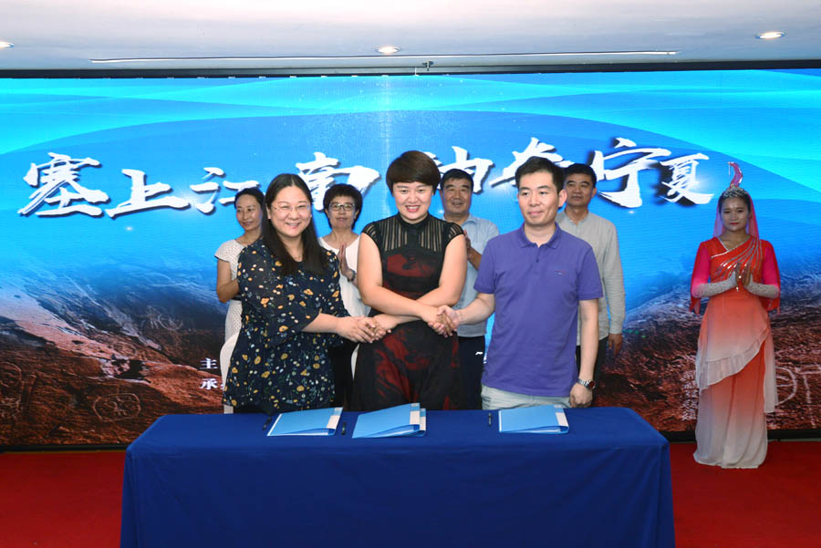 河南省旅游局副局長周耀霞、寧夏旅游發(fā)展委員會副主任黨建平出席旅游推介會并為旅游企業(yè)合作簽約儀式鑒簽