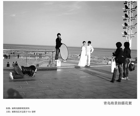 “真的假不了,假的真不了,這碧藍的海水、金色的沙灘是電腦技術(shù)無法取代的。”參加旅游式婚紗攝影的秦女士說,朋友的婚紗照大多是在攝影棚中搭建的布景前拍攝的,背景、姿勢都是攝影師預(yù)先設(shè)計好的,大同小異,沒有什么特色,這也正是她下定決心邊旅游邊拍婚紗照的主要原因。