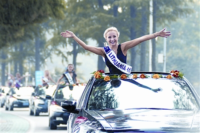 上午9時30分,香車美女穿過東湖磨山楚城的城門,直奔梨園。金色或黑色的長發(fā),巧克力色或黑色的肌膚,來自近120個國家的美女綻放出不一樣的美。不少市民一路追隨,邊揮手邊向各國佳麗拋出“very beautiful”的贊美,佳麗們則不斷用中文回以“你好”,“謝謝”,并露出如花笑顏與市民們合影。一位愛美的小姑娘握住金發(fā)碧眼的塞爾維亞小姐就不愿放手,仿佛在說“我長大要和你一樣”,逗樂眾人。擁有高挑身材、優(yōu)雅笑容的“中國小姐”沈玉潔更是受到眾人的追捧,這位22歲的大連姑娘曾在北京奧運會上擔任過奧運舉牌手。