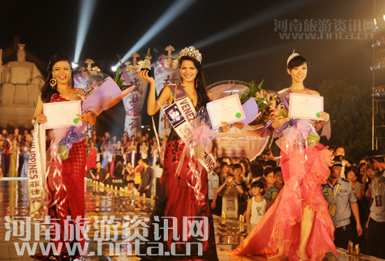 昨日晚,2009年國際旅游小姐冠軍總決賽最佳晚裝大賽在中華民族圣地黃帝故里激情上演。晚裝大賽的T型臺搭在黃帝故里拜祖廣場漢白玉黃帝像腳下。伴隨著歡快的旋律,不同膚色、不同風情的佳麗,身著精心設(shè)計的晚禮服,盡情展示著自己的活力之美。上千名現(xiàn)場觀眾不時發(fā)出陣陣喝彩。最后,評委綜合評定,委內(nèi)瑞拉小姐摘取晚裝桂冠,中國小姐獲得亞軍,菲律賓小姐獲得第三名。