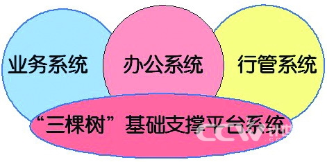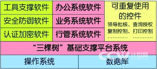 在電子政務(wù)信息系統(tǒng)建設(shè)中,還需將“辦公系統(tǒng)”、“業(yè)務(wù)系統(tǒng)”和“行管系統(tǒng)”中共性部分,即“統(tǒng)一的機(jī)構(gòu)人員樹、統(tǒng)一的信息資源分類樹、統(tǒng)一的權(quán)限分配策略樹”歸納、提煉合并建設(shè)成“‘三棵樹’基礎(chǔ)支撐平臺(tái)系統(tǒng)”。