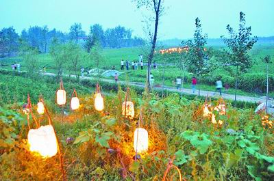 每年的農(nóng)歷七月十五傍晚時分,人們便趕往梁祝雙墓給梁祝送燈。