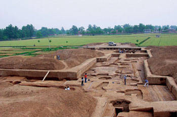 相傳周武王伐紂克商,得勝回師,在盆地東部一帶偃旗息鼓,解散軍隊(duì),休養(yǎng)民生,偃師即因此而得名。遺址所在的二里頭村位于古伊洛河北