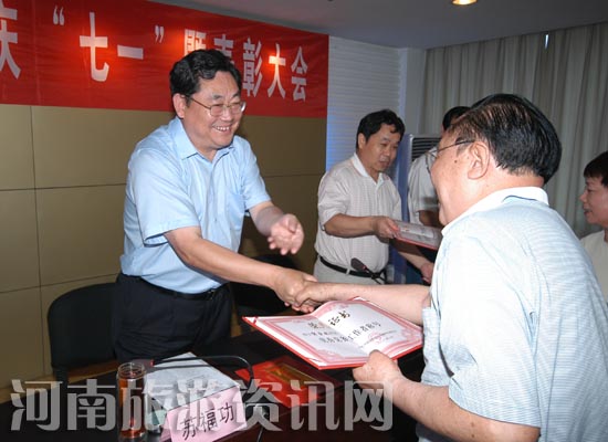 6月30日下午,河南省旅游局慶“七一”暨表彰大會隆重召開。會議對2007年下半年以來省旅游局機關黨建工作進行了總結(jié),對今后一個時期的黨建工作進行了安排部署,并對2007年度局直系統(tǒng)“五好”基層黨組織和優(yōu)秀黨務工作者、優(yōu)秀共產(chǎn)黨員進行了表彰。省旅游局黨組書記、局長蘇福功,黨組成員、副局長李亞白,黨組成員、紀檢組長、局直單位黨委書記周保建,副巡視員王玉寶以及機關各處室、直屬單位負責人參加了會議。