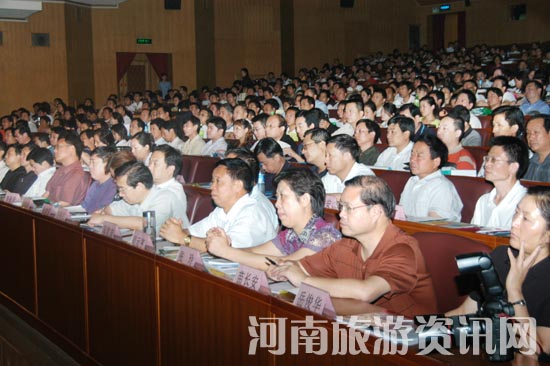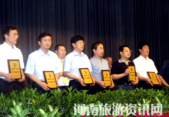 河南省旅游局局長楊盛道、副局長高揚先、何琳、李亞白,助理巡視員王玉寶,各省轄市旅游局局長、全省各旅行社負責(zé)人參加了會議。會議表彰了全省五十佳、百優(yōu)旅行社,并向他們頒發(fā)了榮譽獎牌,河南省旅游集團、平頂山友好國際旅行社負責(zé)人作了經(jīng)驗介紹,河南省中國國際旅行社董事長黃德洲代表全省旅行社發(fā)出了“深入開展誠信旅游服務(wù)”的倡議書。